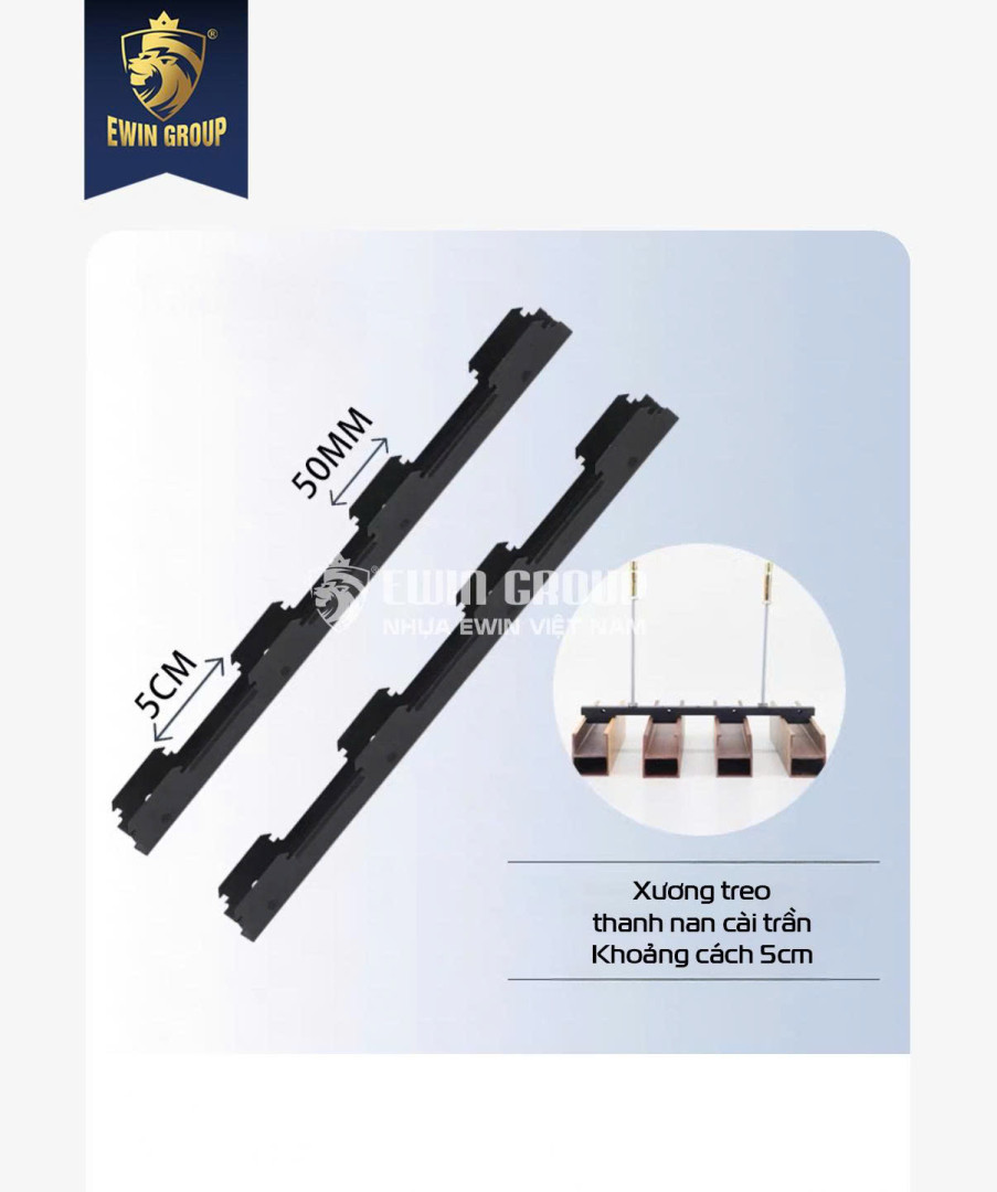 Xương U là phụ kiện tiêu chuẩn cho nan trần khổ rộng 40mm, dễ dàng kết hợp với nan gỗ nhựa, nan nhôm hoặc lam trang trí EWIN, tạo nên một hệ trần hoàn thiện, thẩm mỹ và bền chắc.